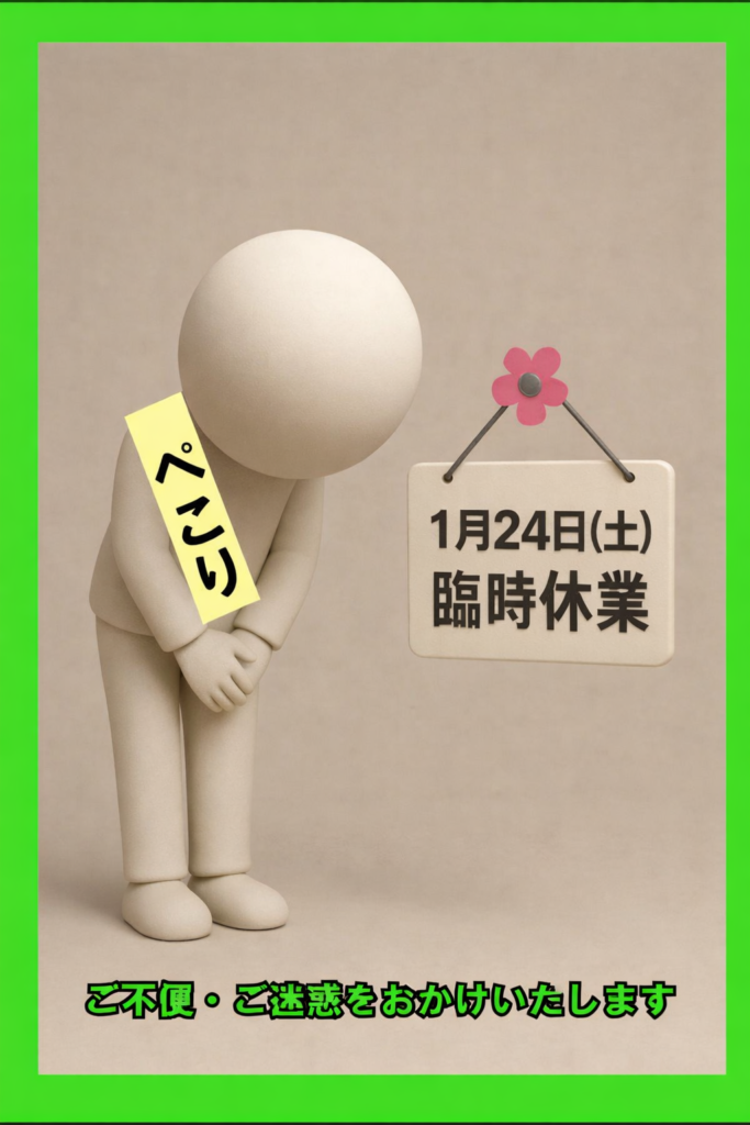 誠に勝手ながら2026年1月24日(土)を臨時休業とさせていただきます。