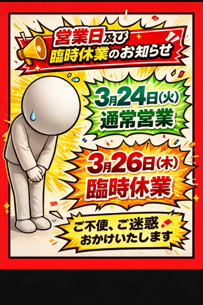 📢営業日及び臨時休業のお知らせ